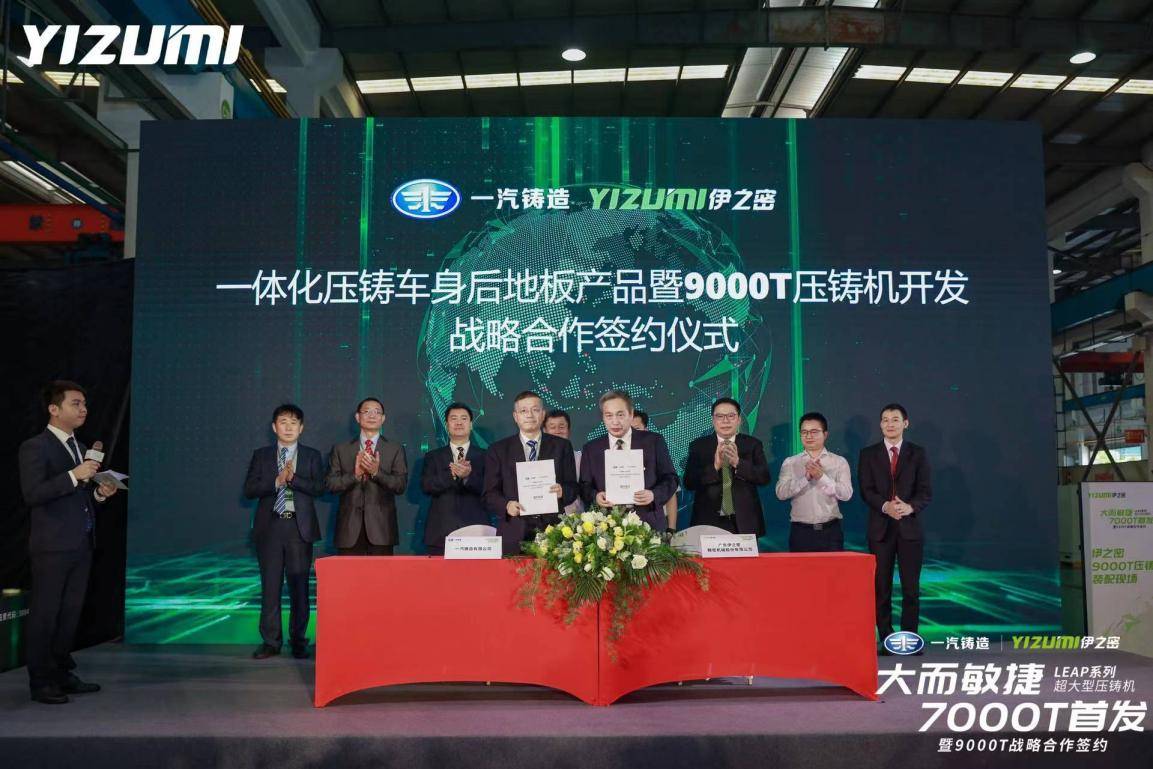 随着新能源汽车浪潮兴起,“压铸一体化”时代悄然而至。5月26日,伊之密“大而敏捷LEAP系列超大型压铸机7000T首发暨9000T战略合作签约仪式”在佛山顺德举行。现场,伊之密与一汽铸造签署战略合作协议,建立9000T压铸整体解决方案的合作伙伴关系。顺德区委副书记、区长区柱明参加活动。